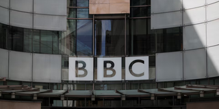 The BBC logo is displayed above the entrance to the BBC headquarters in London, Britain, July 10, 2023.