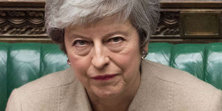 Britain's Prime Minister Theresa May listens to a speaker during a debate in the House of Commons in London on the government's EU Withdrawal Agreement Bill, March 29, 2019. PHOTO | MARK DUFFY | UK PARLIAMENT | AFP