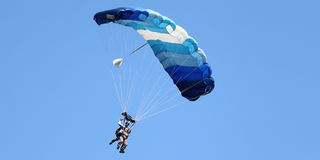 Rut Larsson and skydiving expert Joackim Johansson (left) successfully landed in Motala urban area, Sweden, on May 29.