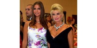 In this file photo taken on August 04, 2001, Ivana Trump (right) and her daughter Ivanka Trump arrive for the traditional Red Cross Ball in Monaco.