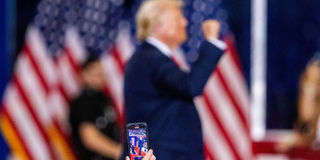 A person takes a video of Republican presidential nominee and former U.S. President Donald Trump during a rally in St. Cloud, Minnesota, U.S. July 27, 2024.
