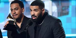 Canadian rapper Drake accepts the award for Best Rap Song for "Gods Plan" during the 61st Annual Grammy Awards on February 10, 2019, in Los Angeles.