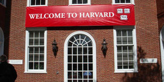 The entrance to one of the buildings at Harvard University.