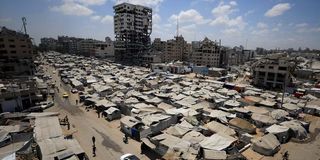 Palestinians, displaced by the Israeli offensive, shelter in a tent camp as the Israeli military prepares to relocate residents to southern Gaza, in Gaza City August 17, 2025.