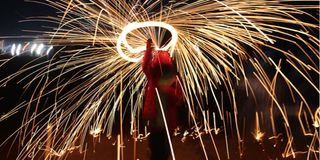 A boy lights up and spins round a steel wool in the Kangemi area, giving the fireworks vibes to mark the new year 2026 celebrations.