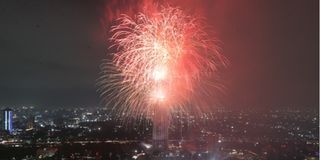Fireworks display at UAP Old Mutual Towers in Nairobi to usher in the new year 2026.