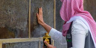 A member of the hajj staff applying Oud perfume to the Kaaba. PHOTO | AFP