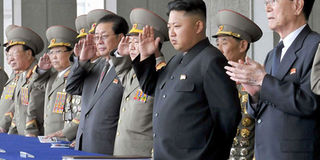 This file picture taken by North Korea's official Korean Central News Agency (KCNA) on September 9, 2013 and received on September 10, 2013 shows North Korean leader Kim Jong-Un (3rd R), accompanied by senior party, state and army officials, including his uncle Jang Song-Thaek (5th R), inspecting a mass parade of the Worker-Peasant Red Guards at Kim Il-Sung Square in Pyongyang to mark the 65th anniversary of the national foundation day. PHOTO | KCNA VIA KNS | FILE