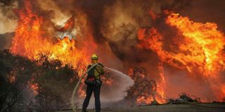 San Miguel County firefighters battle a brush fire along Japatul Road in California on September 6, 2020