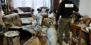 A member of the Israeli police inspects part of an Iranian missile in a living room, after Iran launched barrages of missiles towards Israel, amid the U.S.–Israeli conflict with Iran, in Rehovot, Israel, March 20, 2026.