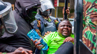 Police officers arrest a protester along Kimathi Street in Nairobi on August 8th 2024 during the Nane nane nationwide protests.