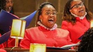 A member of the All-Saints' Cathedral Nairobi choir performs during Christmas Eve services on Wednesday, December 24, 2025, as Christian faithful gather to usher in Christmas Day.