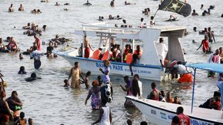 Thousands of holidaymakers throng Jomo Kenyatta Public Beach in Mombasa during Christmas holiday celebrations on December 25, 2025.