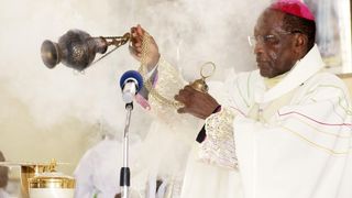 Archbishop Martin Kivuva Musonde of the Catholic Archdiocese of Mombasa conducts a special Christmas service at the Holy Ghost Cathedral in Mombasa on December 25, 2025.