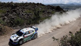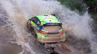 Jon Armstrong and co driver Shane Byrne racing on a Ford puma race through the Geothermal stage on March 13, 2026.