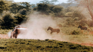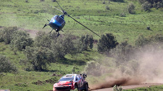 Elfyn Evans navigated by Scott Martin on a Toyota Yaris encounter a zebra as they race through Elementaita stage on March 14,2026.