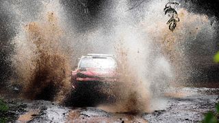 Adrien Fourmaux navigated by Alexandria Coria on a Hyundai i20 race through Soysambu stage on March 14,2026.