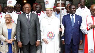 President Elect Uhuru Kenyatta, First Lady Margaret Kenyatta, Archbishop of Carterbury Justin Welby with NASA principal Raila Odinga after attending a church service at the All Saint Cathedral, Nairobi. November 5, 2017.