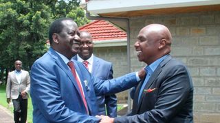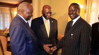 Opposition leader Raila Odinga visited retired president Daniel Moi at his Kabarak home.