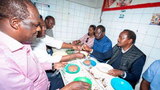 Azimio Leader led by Raila Odinga having lunch at Kenyatta Market in Nairobi.