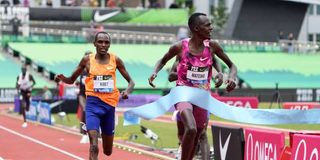Daniel Mateiko wins the 10,000m race ahead of Bernard Kibet during the Prefontaince Classic Diamond League on May 25, 2024 in USA.