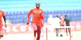 Ex-Kenya 400m champion Zablon Ekwam goes through his paces at Ulinzi Sports Complex, Langata in Nairobi on May 29, 2025.