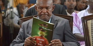 Late Joe Kadenge's brother John Anzrah in a requim mass of his brother at Friends church (Quakers), Nairobi on July 17 2019. PHOTO | SILA KIPLAGAT |