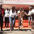 From left: Nakuru Deputy Governor David Kones, Nakuru Governor Susan Kihika and World 1500 metres record holder Faith Kipyegon join traditional dancers in a jig at the county headquarters in Nakuru on December 22, 2023.