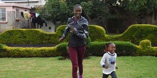 Former 800m world champion Janeth Jepkosgei and her daughter Becky Olympia Jepchirchir, 4, have fun at their home in Eldoret town, Uasin Gishu County on August 31, 2020.
