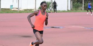 Former 800m world champion Janeth Jepkosgei trains at Kipchoge Keino Stadium in Eldoret town, Uasin Gishu County on September 1, 2020.
