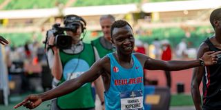 Ishmael Kipkurui reacts after winning the 10,000m race during the NCAA National Championships at the Hayward Field in Oregon, Eugene in US on June 11, 2025.
