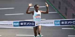 Kenya’s Winfridah Moraa Moseti finishes in second place in the women’s category of the Tokyo Marathon on March 2, 2025.