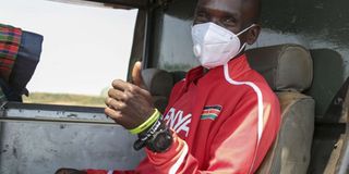 Olympic marathon champion and world marathon record holder Eliud Kipchoge arrives at the Maasai Mara Game Reserve on August 8, 2020.