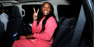 Shelly-Ann Fraser-Pryce leaves the Jomo Kenyatta International Airport on May 9, 2023 shortly after she touched down ahead of the Absa Kip Keino Classic set for May 13.