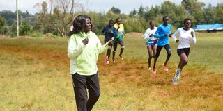 Ruth Jepchumba Bundotich, 53, who started a camp for upcoming athletes at Metkei in Keiyo South, Elgeyo Marakwet County, and was crowned the ‘Best Woman Of The Year Award’ by World Athletics, trains athletes during a session at Kamwosor Primary School in the county on December 19, 2025.