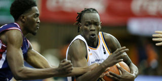 Nairobi City Thunder's Ater Majok goes for a basket infront Johannesburg Giants' Liam Markduring the East Africa Champions Clubs Road to Basketball Africa League qualifiers at Moi International Sports Centre, Kasarani Gymnasium, on November 23, 2025