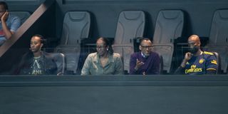 From left: First Daughter Ange Kagame, First Lady Jeannette Kagame, President Paul Kagame and his son-in-law Bertrand Ndengeyingoma watch the Basketball Africa League match between Patriots and US Monastir of Tunisia at Kigali Arena, Kigali on May 23, 2021.