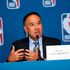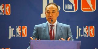 Mark Tatum, NBA Deputy Commissioner and Chief Operating Officer, speaks during the announcement of the partnership between NBA Africa and Safaricom at SABIS International School, Nairobi on October 9, 2024. WILFRED NYANGARESI|NATION