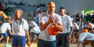 Derek Lamar Fisher, an American professional basketball coach and former Los Angeles Laker point and shooting guard conducts a coaching clinic at SABIS International School in Nairobi on October 9, 2024.
