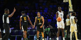Part of the action between Nairobi City Thunder and Al Ahli Tripoli during their Basketball Africa League match on May 18, 2025 in Kigali, Rwanda.