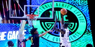 Nairobi City Thunder's Evans Ganapamo (left) plays against Made In Ball Basketball (MBB) during their Basketball Africa League (BAL) Season 5 Nile Conference match at the BK Arena in Kigali, Rwanda on May 20, 2025.