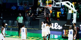 Patriots centre Bush Wamukota dunks the ball during their Basketball Africa League Group A match against Madagascar’s Gendarmerie Nationale Basketball Club (GNBC) at Kigali Arena, Rwanda on May 19, 2021.