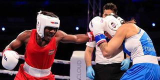Kenya’s bantamweight boxer Amina Martha takes on Russia’s Karina Tazabekova at the 14th IBA Women’s World Boxing Championships in Nis, Serbia, on Tuesday. The Russian won on points.