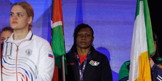 Team Kenya captain, light-heavyweight Elizabeth Andiego (centre), with other flagbearers during the opening ceremony of the IBA Women's World Boxing Championships in Nis, Serbia, on March 8, 2025.