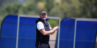Gor Mahia coach Sinisa Mihic conducts a training session on February 5, 2025 at MPesa Academy grounds in Kiambu County.