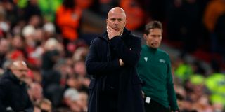 Liverpool’s manager Arne Slot reacts during his team’s UEFA Champions League match against PSV Eindhoven at Anfield, Liverpool, Britain on November 26, 2025.