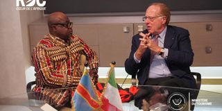 The Democratic Republic’s Minister for Tourism Didier M’pambia (left) and AC Milan Chairman Paolo Scaroni during the signing of a partnership agreement with Italian football club AC Milan on June 19 in Rome.