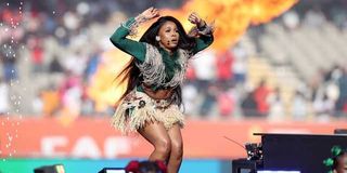 Tanzanian Musician Zuchu entertains during their CHAN finals match between Madagascar and Morocco at Moi International Sports Centre, Kasarani on August 30, 2025.