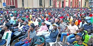 Football fans watch the Chan finals match between Madagascar and Morocco along Moi Avenue in Nairobi on August 30, 2025.