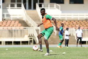 Harambee Stars midfielder Anthony "Teddy" Akumu in action during the team's training session at Moi International Sports Centre, Kasarani on October 7, 2020 ahead of their international friendly tie with Zambia on October 9